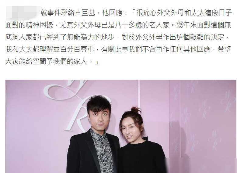 面對(duì)岳父岳母和太太陳英雪在這段艱難時(shí)期所承受的精神困擾,古巨基表示了深深的痛心和同情。他公開表示理解并百分百尊重岳父的決定,并請(qǐng)求公眾給予他和他的家人必要的私人空間。古巨基的這一回應(yīng),不僅展現(xiàn)了他作為一個(gè)公眾人物的成熟與理智,更體現(xiàn)了他作為一個(gè)家庭成員的責(zé)任感和愛。