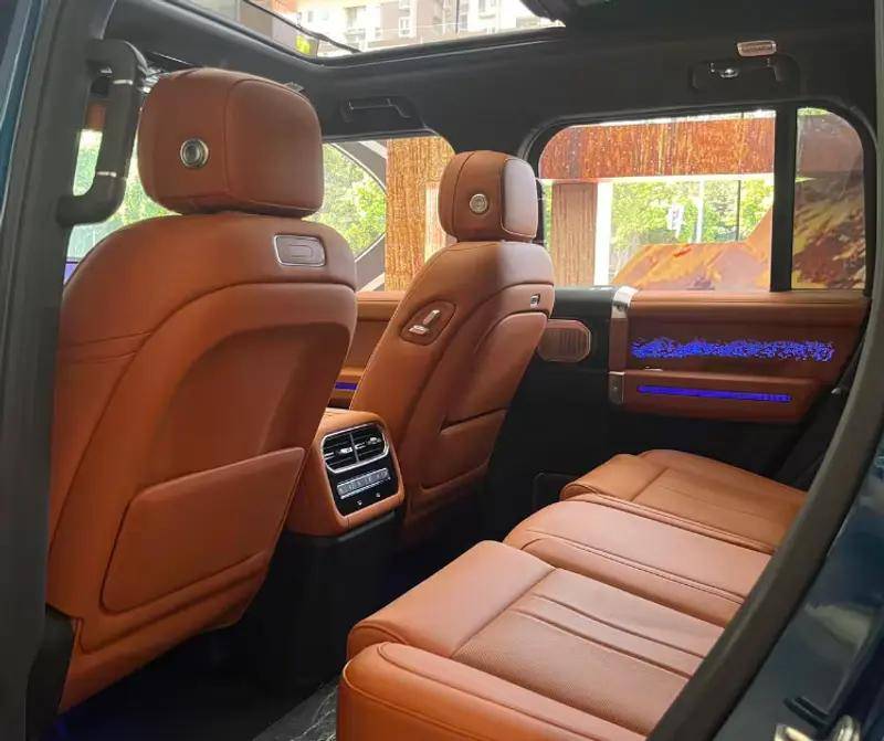 如果說越野性能是“敲門磚”,那么豪華舒適就是縱橫G700 “留住用戶”的關鍵。其內飾配置完全突破了硬派SUV “粗獷化”的傳統認知。35.4英寸貫穿式天際屏+15.6英寸懸浮中控屏的雙屏組合、萊斯康音響、雙溫控車載冰箱、64 色氛圍燈,前兩排座椅均配備8點式按摩+通風+加熱,再加上后排折疊小桌板,直接將商務MPV的舒適體驗移植到硬派SUV上。
