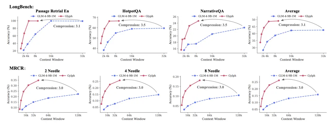 靠著這套組合拳,Glyph在高壓縮的視覺上下文任務里依然能游刃有余。