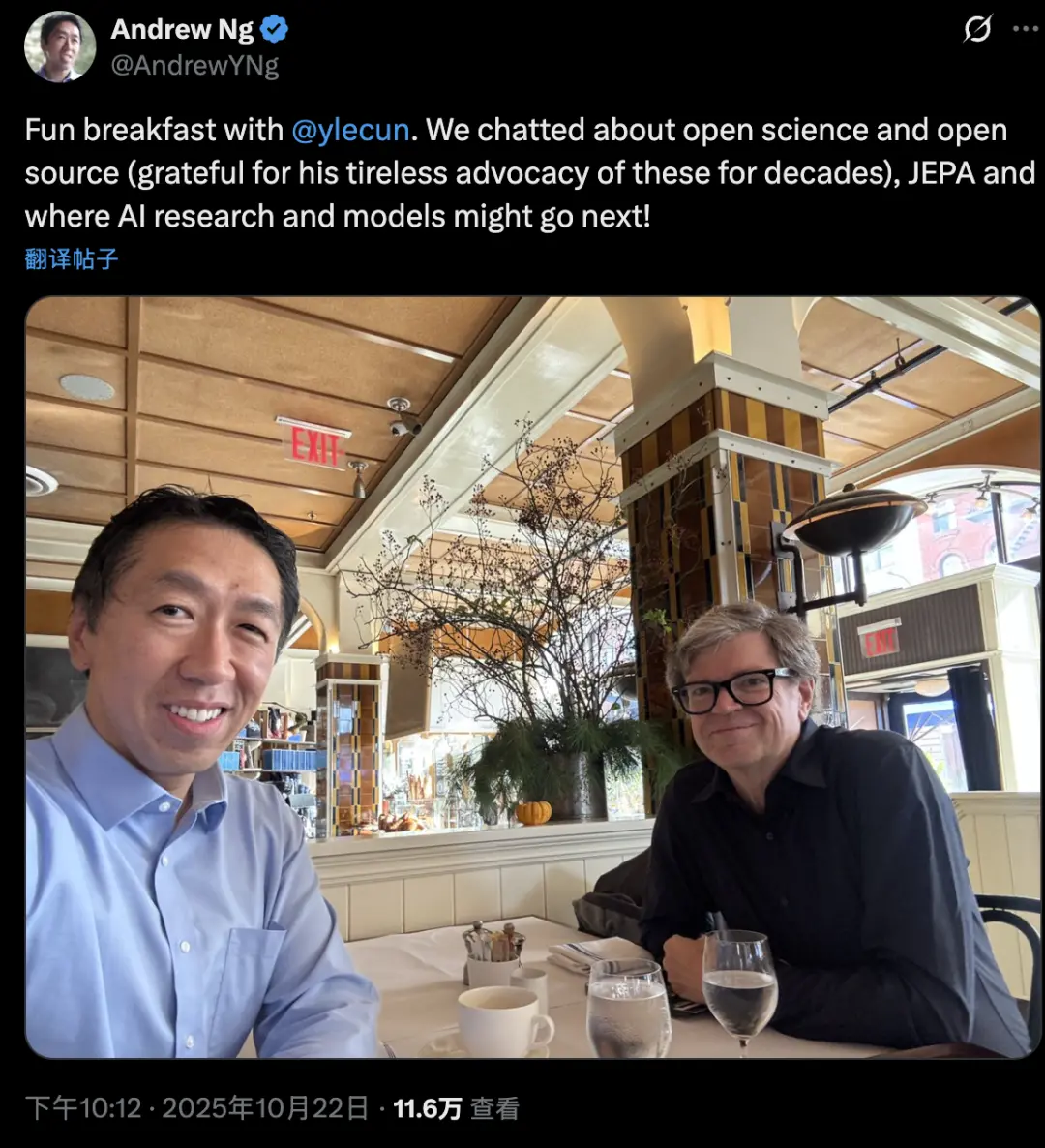 LeCun不語,只是一味的和吳恩達吃早餐。
